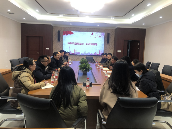 2021年12月29日下午,科发院副院长许果、谢卫东、王开成、申威峰、贾云健,前沿院副院长康治平,科发院综合办、重大项目办、平台办以及前沿院综合办相关同志一行莅临成人AI
