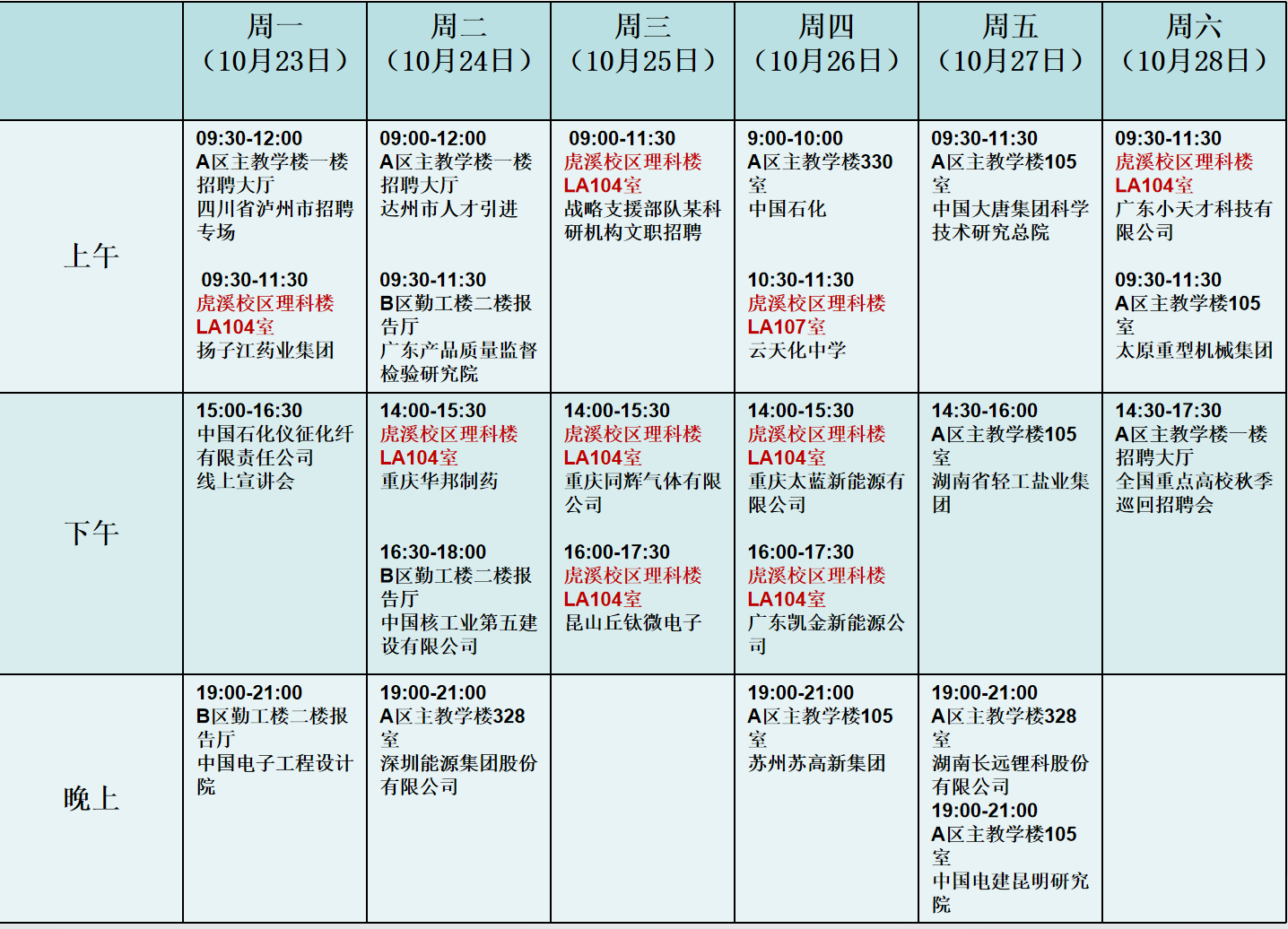 第九周专场宣讲会安排