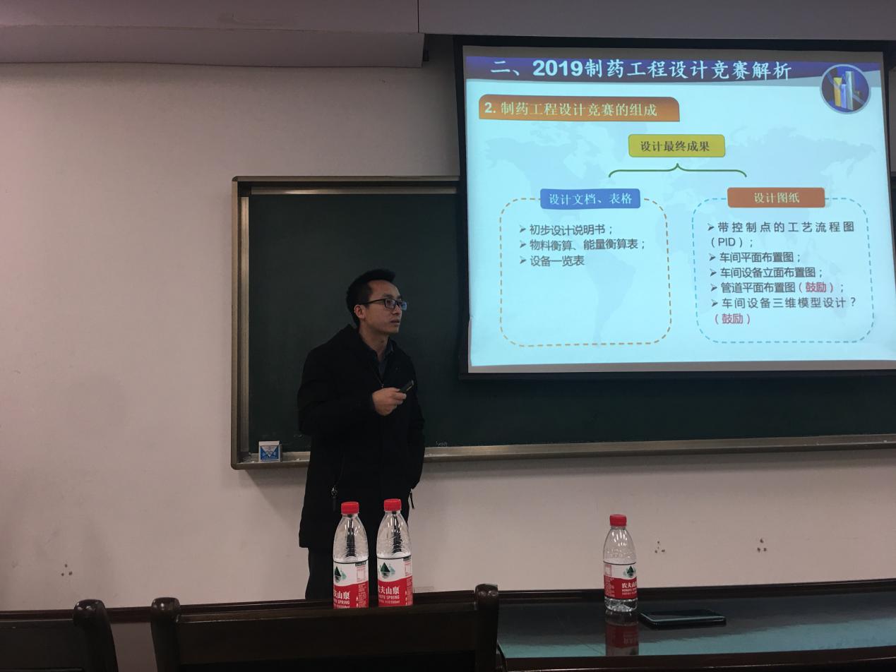 在2018年全国普通高校学科竞赛评估结果中,取得全国排名第五的优异成绩,其中化工学院在各类相关竞赛中表现活跃。这跟学院积极引导学生参加化工竞赛、制药工程设计大赛、树声前锋杯等比赛密不可分。学院对此次制药工程设计大赛高度重视,会给予参赛的同学们足够的帮助与支持,包括安排指导老师,提供必要的物质保障等。希望同学们能和学院共同努力,在此次竞赛中有所收获,有所成就。