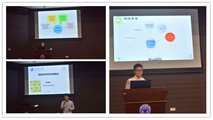 的江文博士、物理学院的彭坤岭博士纷纷为我们带来了《碳源调控蝗绿僵菌产孢模式转换的机制研究》、《高纯度萝卜原花青素二聚体的制备研究》、《单晶热电材料性能的协同优化》的精彩分享。一次又一次的引发了在场学术达人与老师们的激烈讨论,将此次硕博论坛进一步推向高潮!让同学们尽情畅游在学术的海洋!