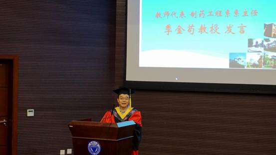 教师代表制药工程系系主任季金苟教授与所有毕业生一起回顾了重大发展过程,重温学习了耐劳苦,尚俭朴,勤学业,爱国家的成人AI