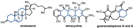 含有脂肪族六元环的结构(又称为环己烷)广泛存在于天然产物和药物分子中,例如胆固醇、四环素等生物活性分子(图2)。与苯炔化学类似,高活性的脂肪族环己炔可通过发生亲核、环加成等反应,同时在炔键上进行多种双官能化。因此,可将环己炔作为一个合成砌块,高效构建多取代脂肪族环烃类化合物。然而,与苯炔化学研究相比,环己炔化学仍远远落后,其原因一方面可归于对其反应类型的开发不足;另一方面是对环己炔上四个非炔键位点官能化较困难。针对这些不足,李杨课题组设想,可否通过易官能化的苯炔前体来制备多取代的脂肪族环己炔前体?通过文献调研发现,氧化去芳构化可温和高效地实现上述目标。利用该手段生成的脂肪族六元环不仅可保留苯环上原有的取代基,还能通过打开苯环大p键的方式“释放”出新的官能团。