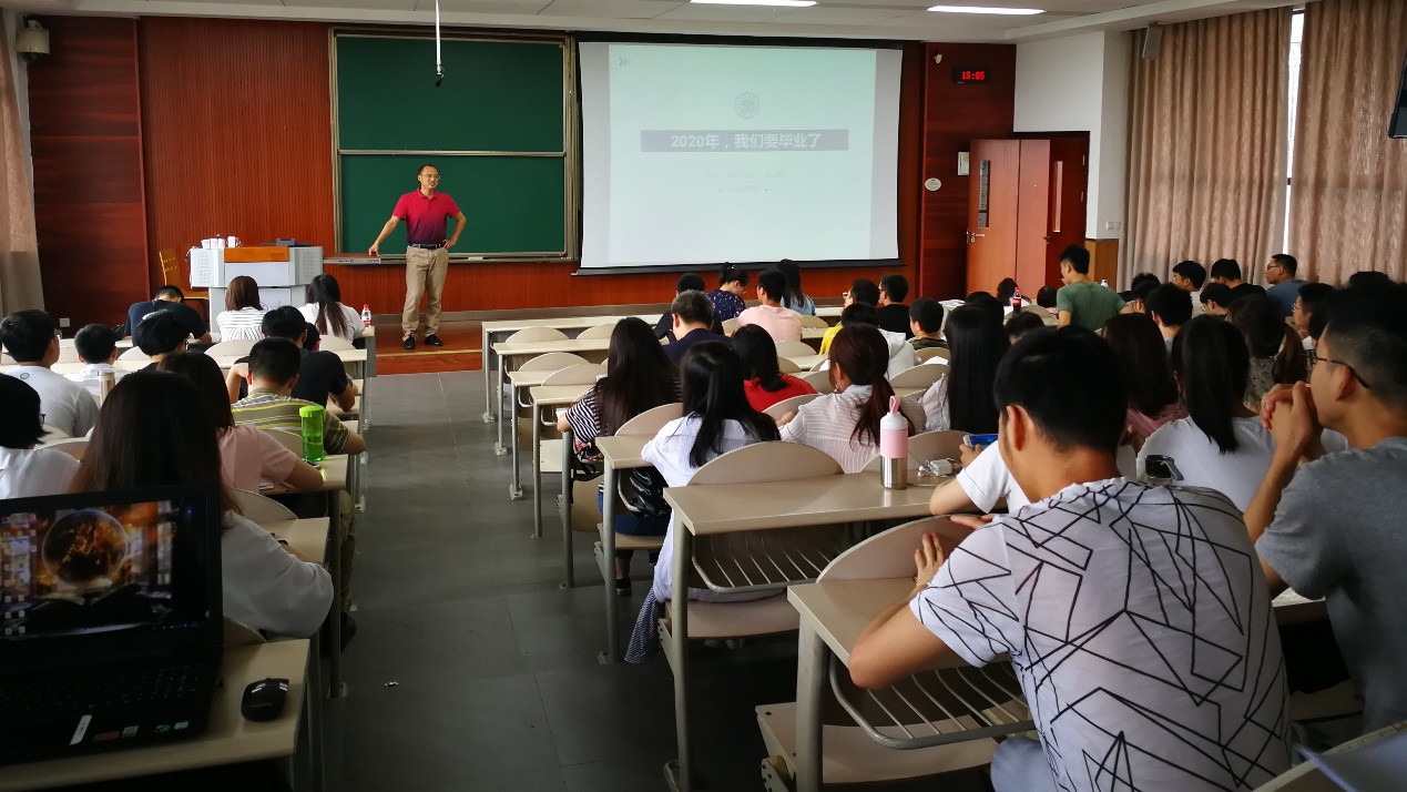 随后,孙江林老师有针对性地给大家作了一个职业生涯规划的报告。他通过分析进几年的招生、毕业的数据指出随着我院本科毕业生逐年减少,院内竞争压力正在减小,但与此同时全国毕业生人数正在逐年地增加,所以2020届就业形势仍不容乐观。针对我院学子在择业时存在的一些问题,孙老师也做了一些分析并提出了一些建议。他强调,在选择公司时不要一味的以对方提供的薪水为唯一标准,而应该紧密结合自身的兴趣爱好、个人能力、职业规划,要想清楚“我想做什么”、“我能做什么”、“我要做什么”这几个问题,心中牢记“我想成为一个什么样的人”,并不断为之努力。升学的同学也应该结合这几个方面来选择研究生阶段的学校导师和研究方向。