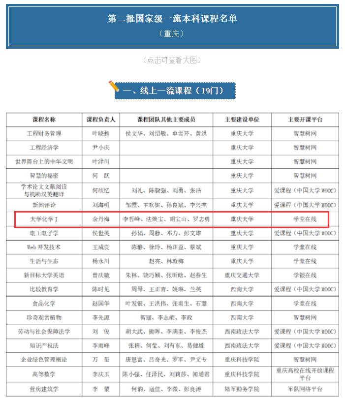 近日,教育部发布了《教育部办公厅关于开展第二批国家级一流本科课程认定工作的通知》,由余丹梅教授作为课程负责人建设的《大学化学I》入选国家级线上一流课程,这是成人AI
