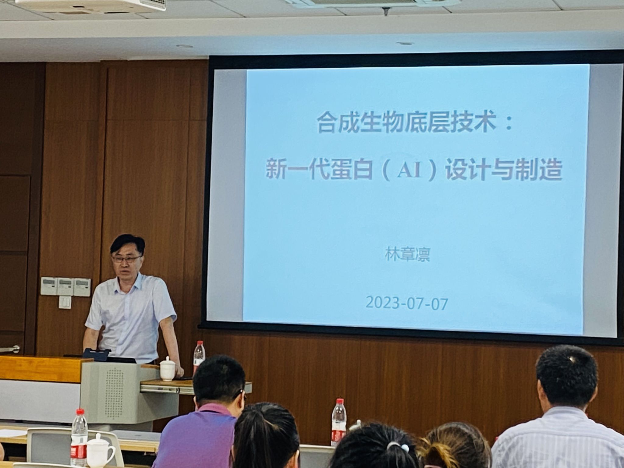 2023年7月7日上午10:00,受王丹教授邀请,中国科学院深圳先进技术研究院林章凛研究员莅临我校,在虎溪理科楼LA108报告厅为师生做主题为《合成生物底层技术:新一代蛋白(AI)设计与制造》的学术讲座。讲座由成人AI