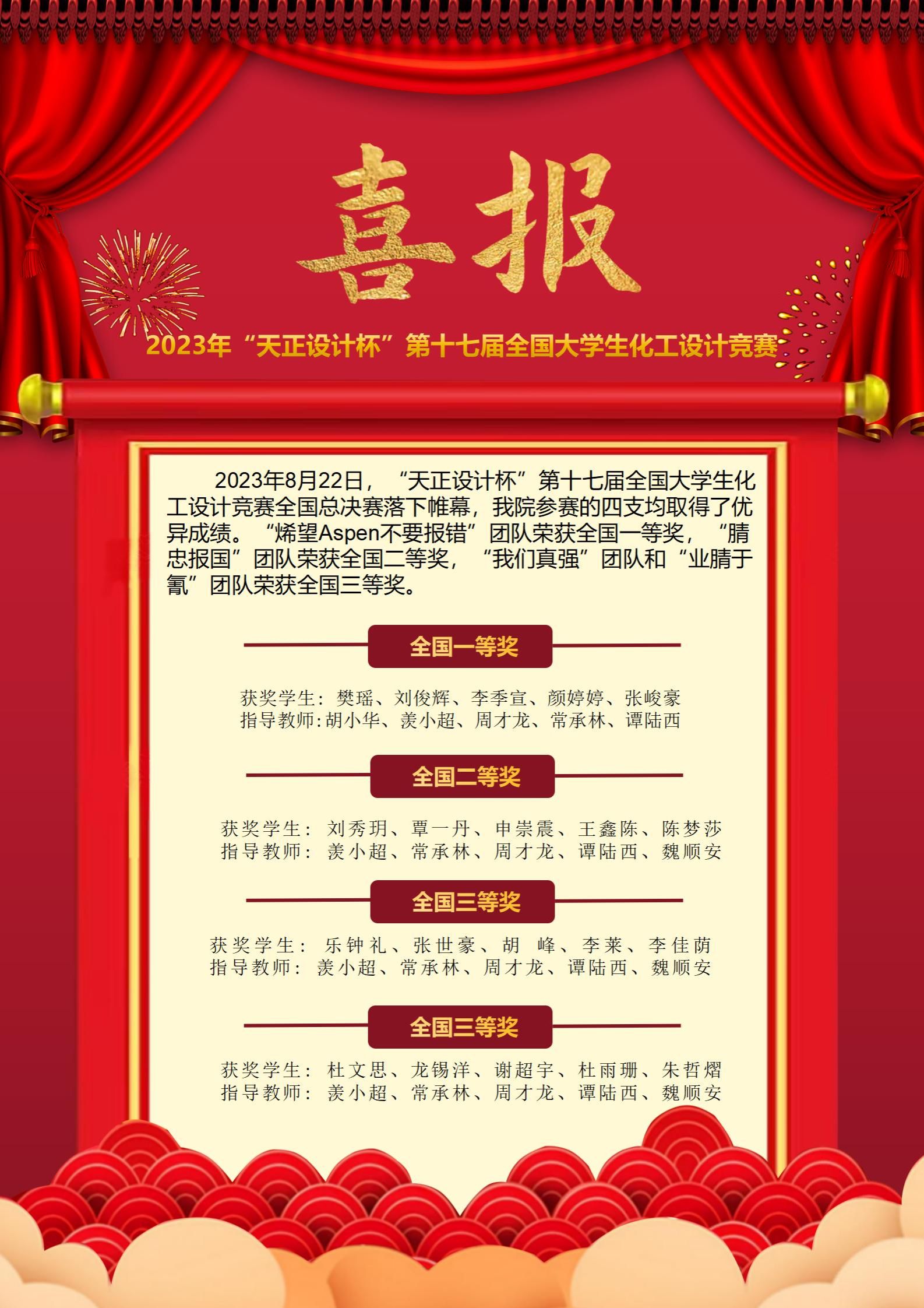 喜报!热烈祝贺我院师生在第十七届全国大学生化工设计竞赛中斩获佳绩!