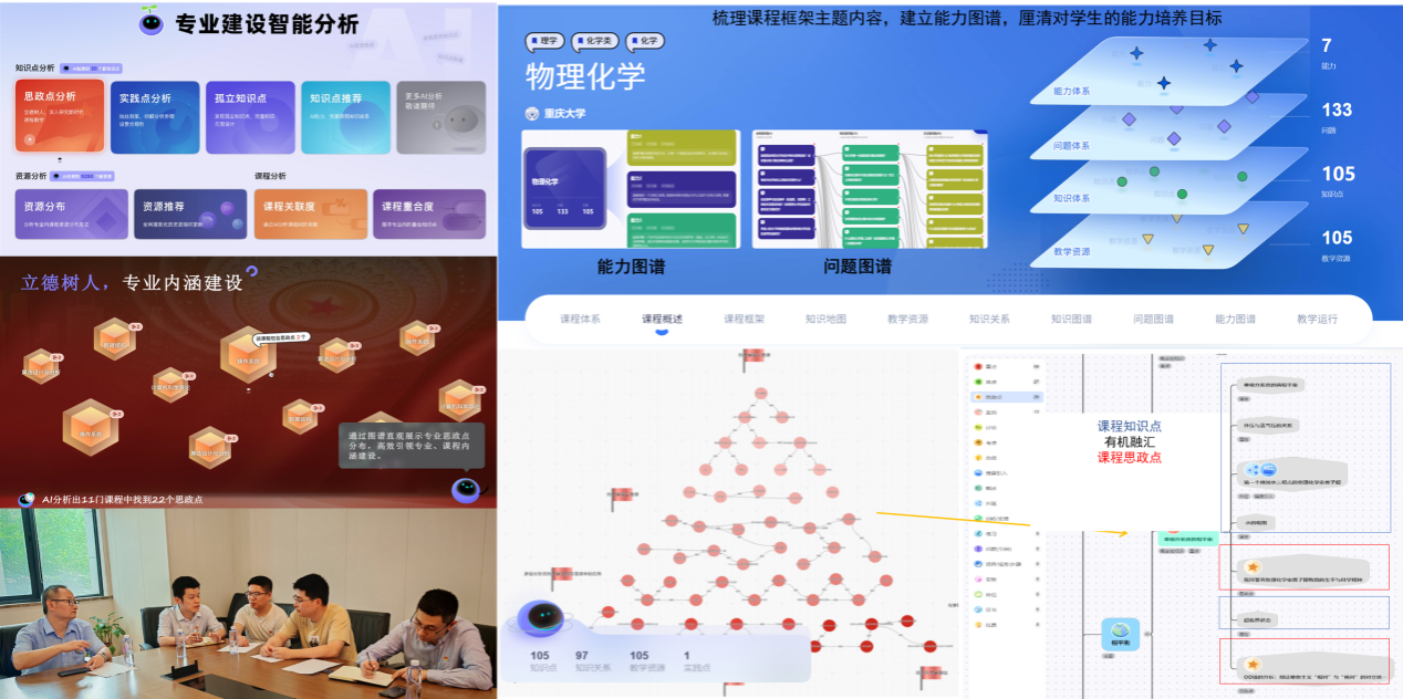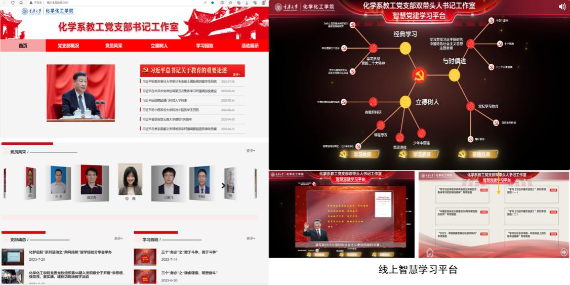 “党建+课程思政”:党支部牵头组建课程思政团队,以《物理化学》一流课程建设为突破口,探索线上线下混合式课程思政教改,实现思政点AI辅助动态挖掘,并融入课程知识图谱,引导师生心怀“国之大者”。