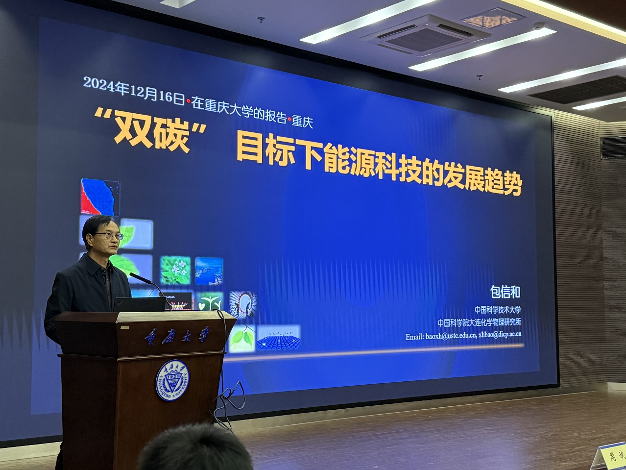 表示欢迎和感谢。他指出:能源事关国家安全,是各国战略必争领域,“碳达峰、碳中和”是我国向世界作出的庄严承诺,也是我国应对气候变化、推动绿色低碳发展的重大战略决策。实现“双碳”目标,能源科学的发展是关键。包院士的到访,不仅是对我校科研工作的极大鼓舞,更为我们提供了宝贵的学习与交流机会。朱才朝强调,希望通过今天的报告会,能够进一步拓宽我们的学术视野,激发我们的科研灵感与创新思维,促进我们在能源及相关领域的深入研究与合作,不断提升我校的科研水平与创新能力,为高质量建设“百年新重大”贡献力量。