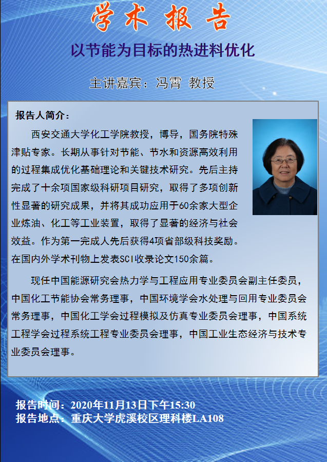 以节能为目标的热进料优化 冯宵教授