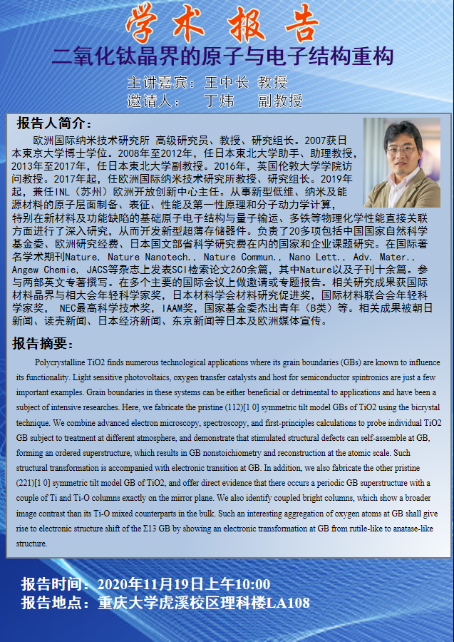 二氧化钛晶界的原子与电子结构重构 王中长教授