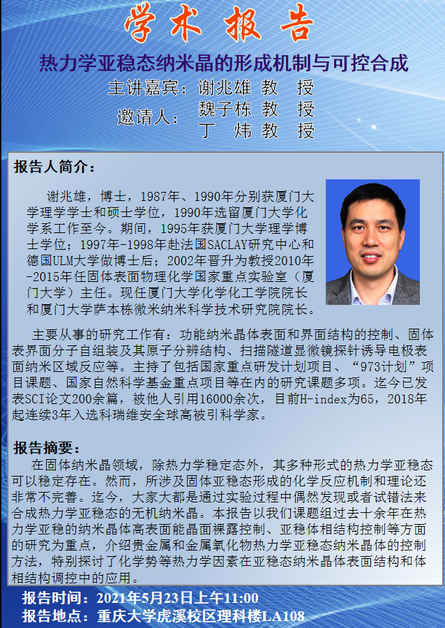 热力学亚稳态纳米晶的形成机制与可控合成 谢兆雄教授