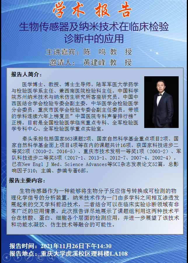 生物传感器及纳米技术在临床检验诊断中的应用(陈鸣教授)