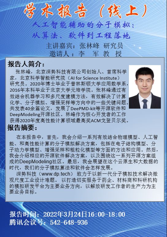 人工智能辅助的分子模拟:从算法、软件到工程落地(张林峰)