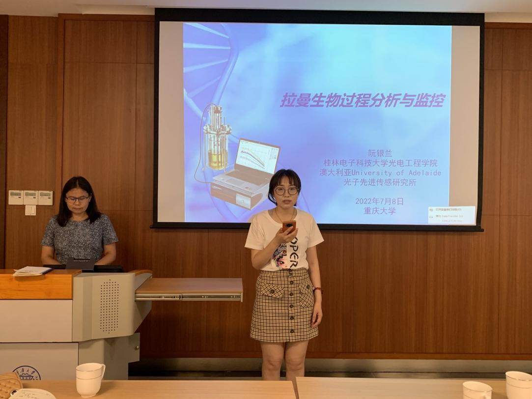 2022年7月8日上午11:00,受王丹副教授邀请,桂林电子科技大学阮银兰教授莅临我校,在虎溪理科楼LA108报告厅为师生做主题为《拉曼生物过程分析与监控》的学术讲座。讲座由成人AI