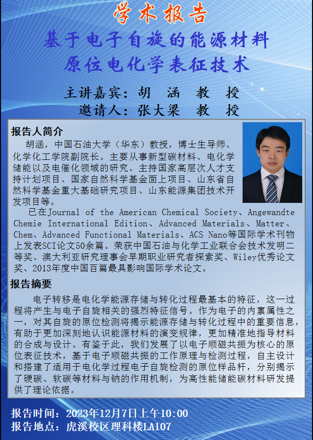 基于电子自旋的能源材料原位电化学表征技术