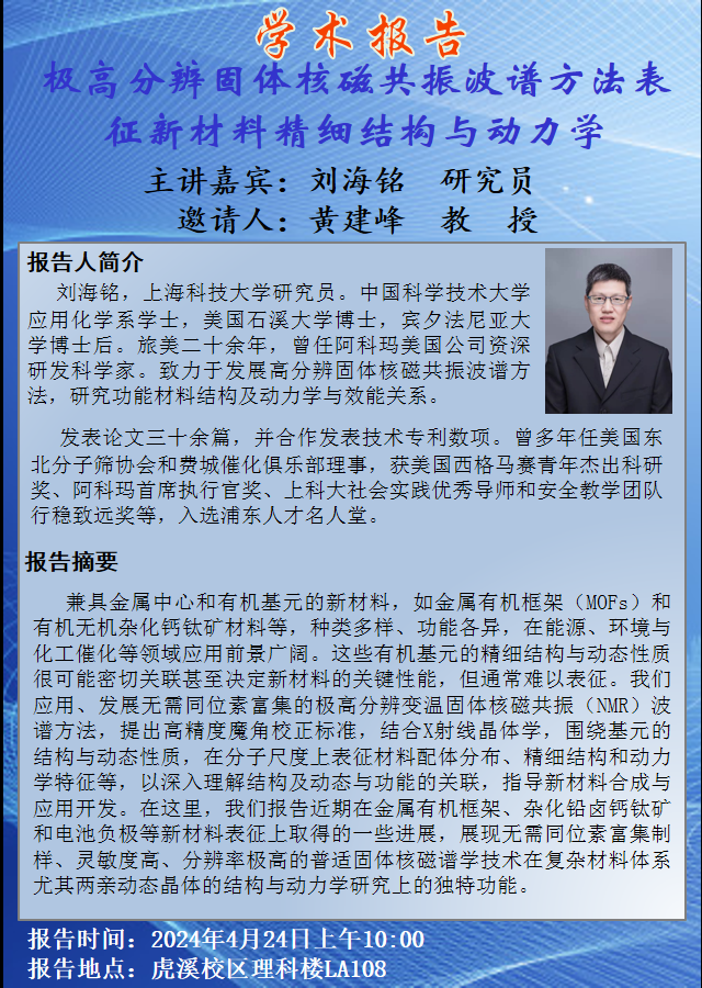 极高分辨固体核磁共振波谱方法表征新材料精细结构与动力学