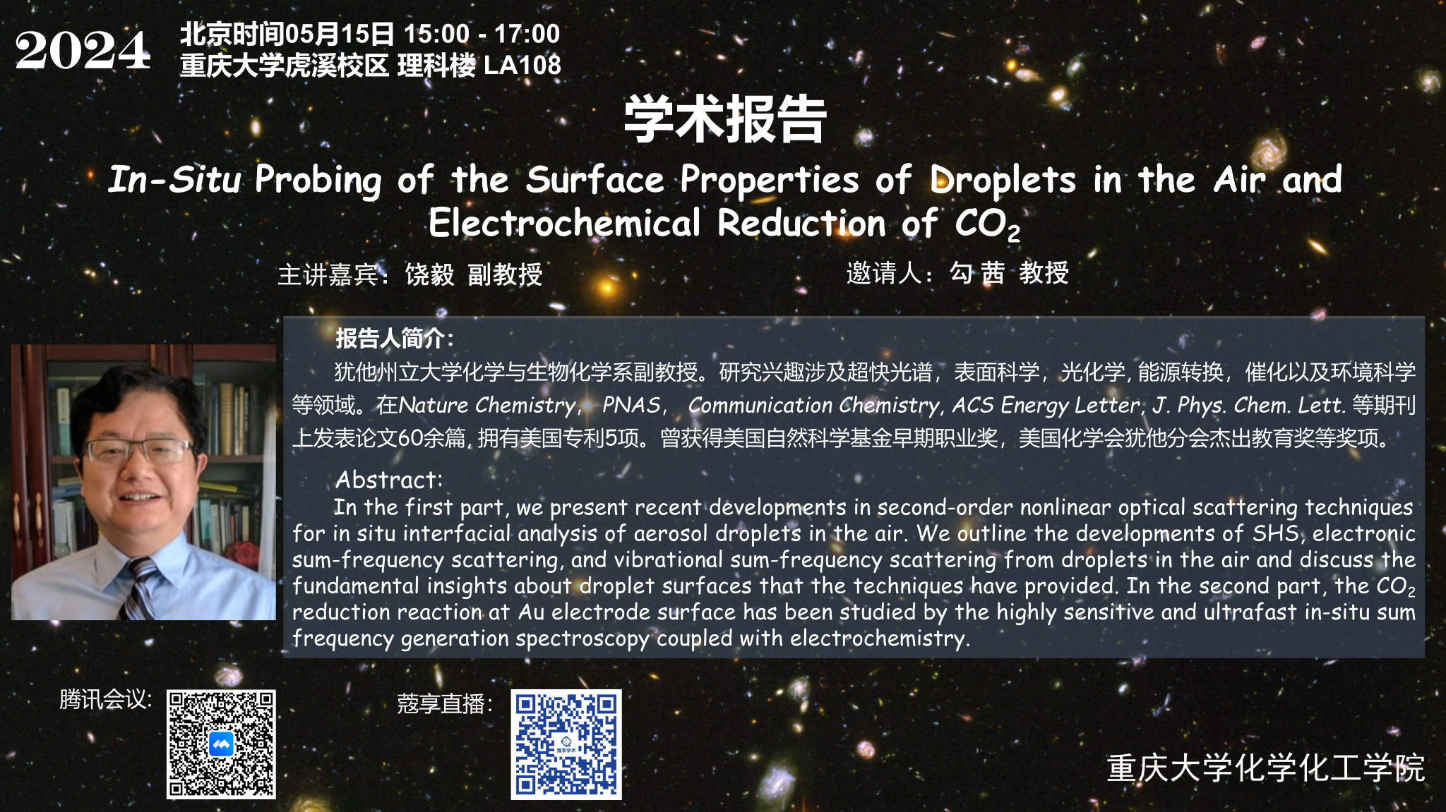 In-Situ Probing of the surface Properties of Droplets in the Air and Electrochemical Reduction of C02