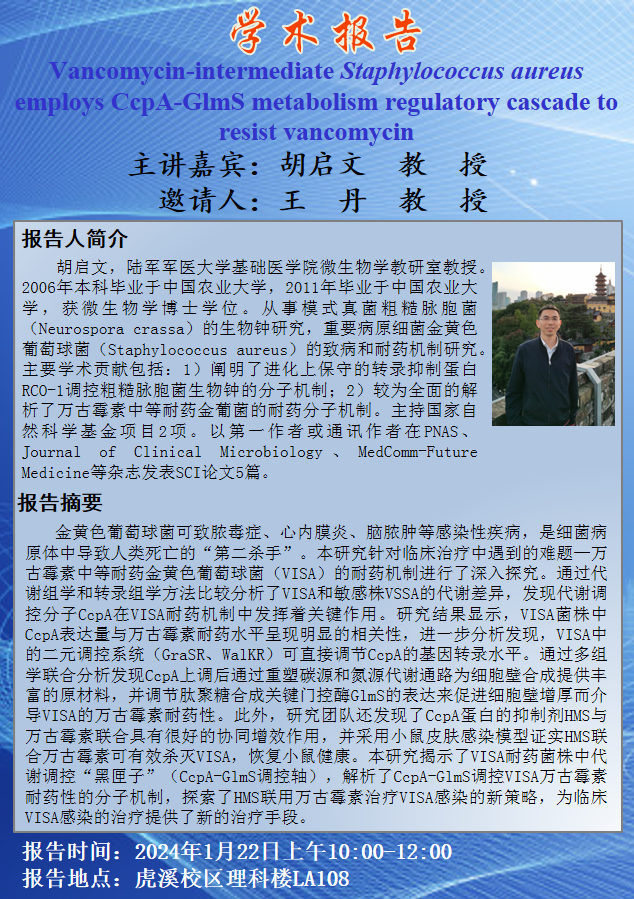 Vancomycin-intermediate Staphylococcus aureus employs CcpA-GlmS metabolism regulatory cascade to resist vancomycin