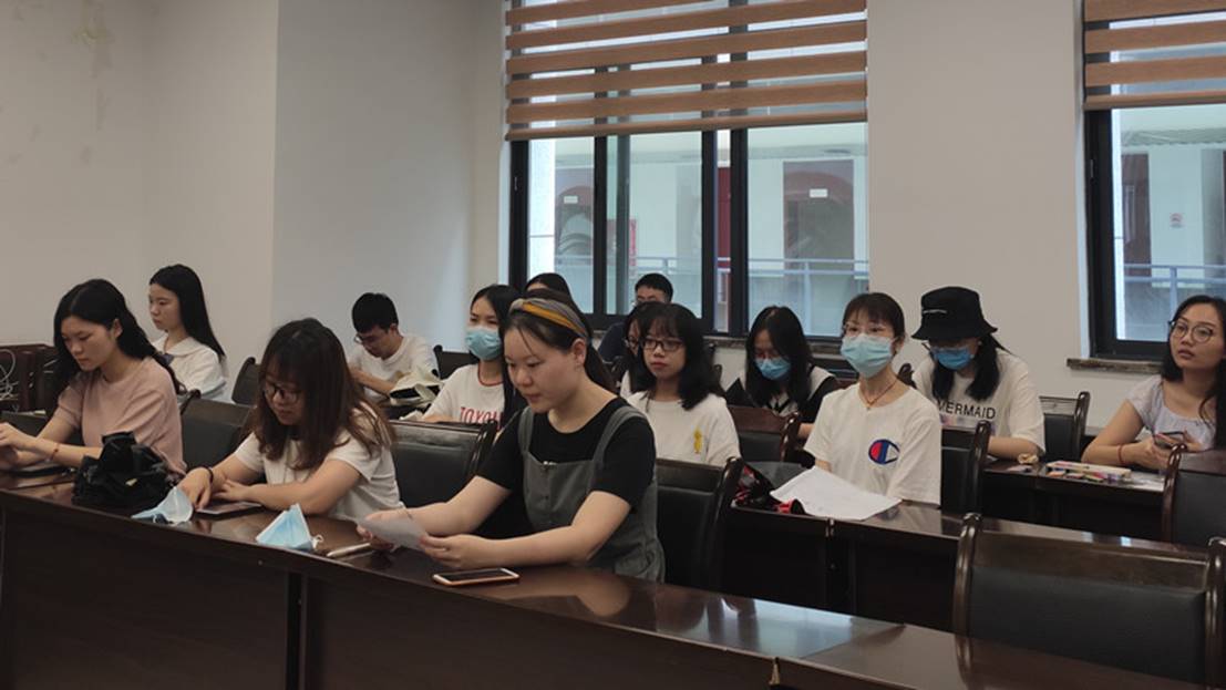 伍丽同志分享了学校以及学院在为第一批返校的武汉籍学生的准备工作,在无比紧急的情况下,学院的全体老师们紧急为同学们购买物资同时确保同学们返校之后感受到温暖,老师们还准备了相关的生活用品和水果,第一批返校的同学们为学校后期能正常开学做出了贡献。程佳同志也分享了自己姐姐作为医学生在疫情吃紧阶段积极投入到抗疫的工作中,即使知道前方存在危险仍义无反顾地前往前线,为抗疫工作做出自己的贡献。