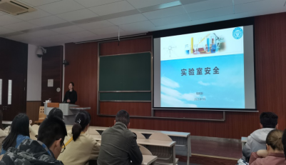 第二项由陶熊新老师主持实验室安全培训会。陶老师介绍了学院实验室安全组织体系、技术安全委员会,又从公共区域和实验室内部介绍了实验室基础设施的情况。讲述了实验室安全准则、化学品安全、设备安全。其中,重点介绍了普通化学品购买流程、易制毒化学品购买流程、爆炸类化学品购买流程,着重强调了购买化学品时,要及时在平台添加使用台账。最后陶老师又从实验室废物日常收集、废物处置、废旧木质箱子处理流程三个方面讲述了废物处置安全。