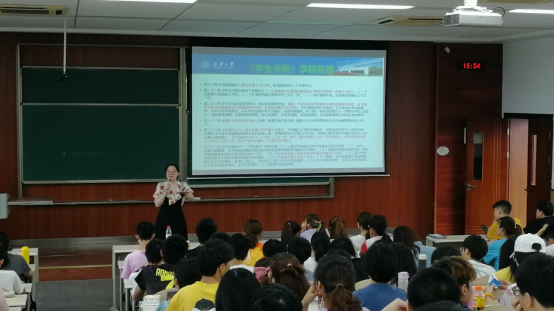 2020级于虎溪校区D1533召开本学期期末考前年级大会,辅导员伍丽老师及2020级全体同学出席了本次大会。