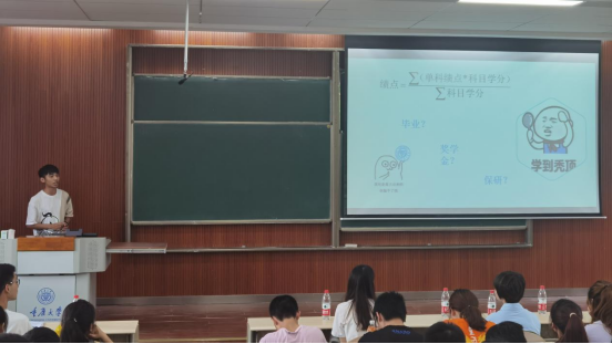 首先,由2017级李星亚、席筱涵两位进行保研经验分享。李星亚保研本校,他介绍了自己四年的成长经历,建议大家学习之余也要适当放松;着重强调学习成绩以及绩点排名对保研的重要性,并且介绍了考研的流程及时间安排,为部分无法保研的同学提供指导建议。
