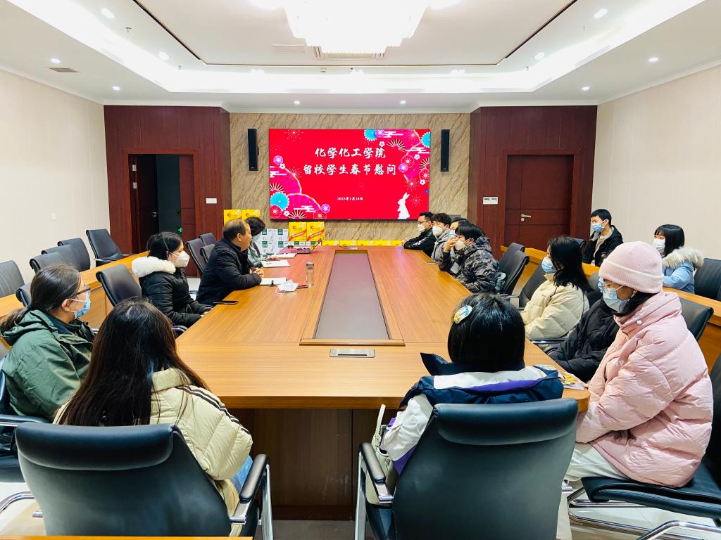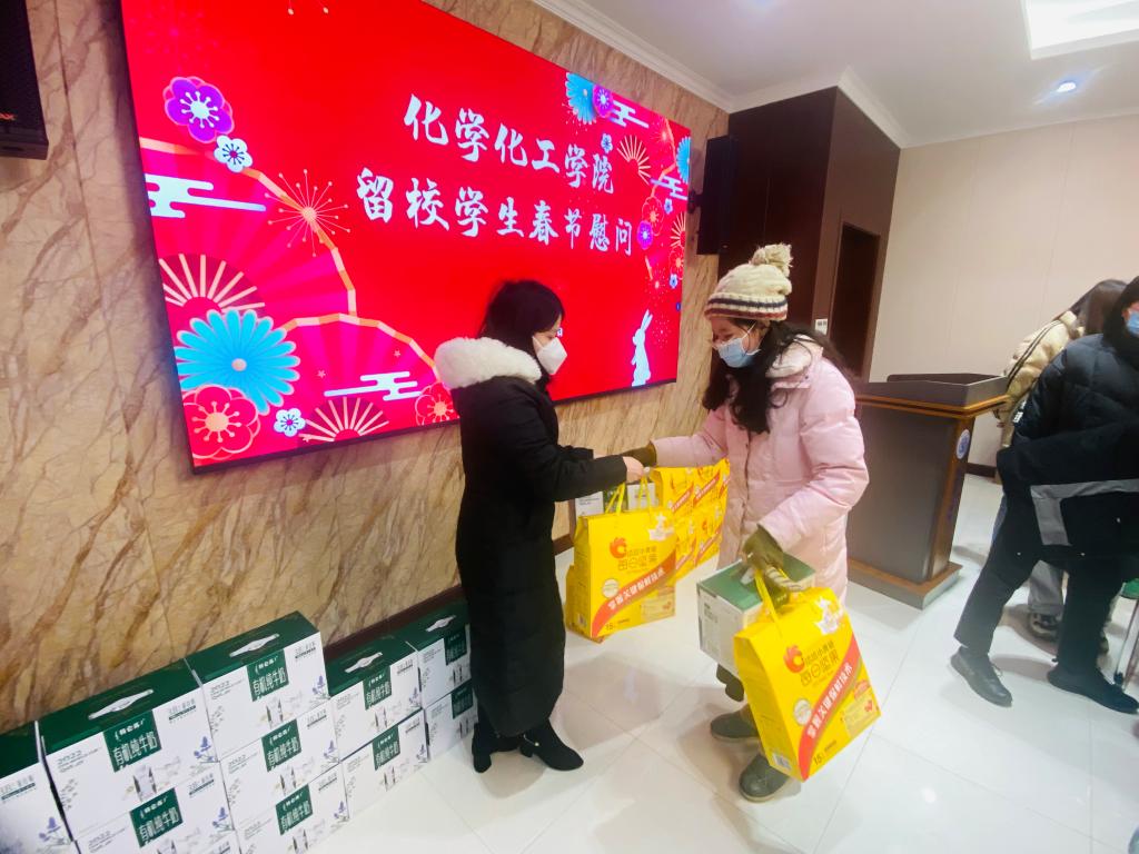 最后,各位辅导员为同学们送上了新春祝福。本次慰问活动,不仅为留校过春节的同学带去了来自学院的温暖和关怀,也用学院的温情扫去了冬季的寒冷。祝愿全体化院学子春节快乐!阖家幸福、万事如意、兔年吉祥!